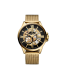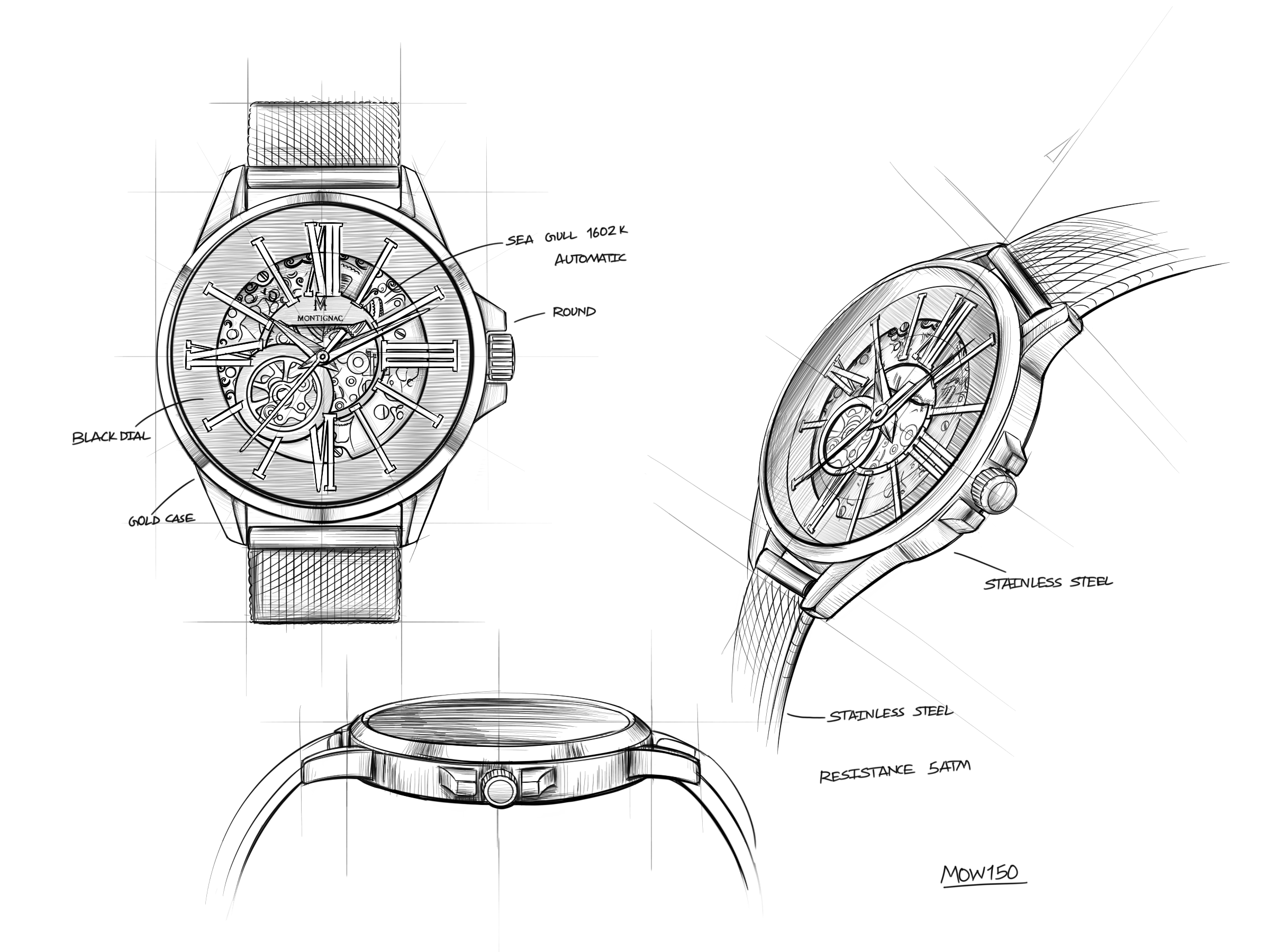 Dessinée et assemblée en France, la montre pour homme MOW150 est dotée d’un boîtier entièrement doré de 42mm et d'un cadran aux tons noir métallisé, laissant apparaître les rouages de son mouvement automatique.