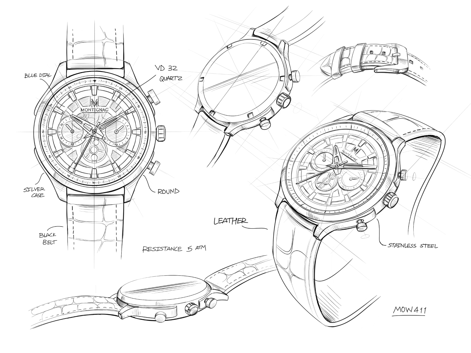 With this chronograph watch designed and assembled in France, Montignac embraces one of the trendiest colors in horology: blue. This model for men features an exclusive design with its semi-skeleton dial revealing part of its Japanese quartz movement.