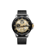 Designed and assembled in France, the men's watch MOW612 creates the illusion of a traditional horological mechanics animated by the power and precision of a quartz movement. This complementary play is evident on the dial side with the combination of golden mechanical elements against a backdrop of absolute black (flange and bracelet).