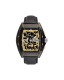 Entirely black with a golden skeleton pattern on the dial, the MOW903 tonneau watch features a design that is both understated and modern. Designed and assembled in France, this quartz chronograph is equipped with a Japanese movement and showcases three analog hands as well as a chronograph function and day/date display.