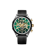 Avec cette montre chronographe dessinée et assemblée en France, Montignac s’empare de l’une des couleurs les plus en vogue dans l’horlogerie : le vert. Ce modèle pour homme présente un design exclusif avec son cadran semi ajouré dévoilant une partie de son mouvement japonais à quartz.