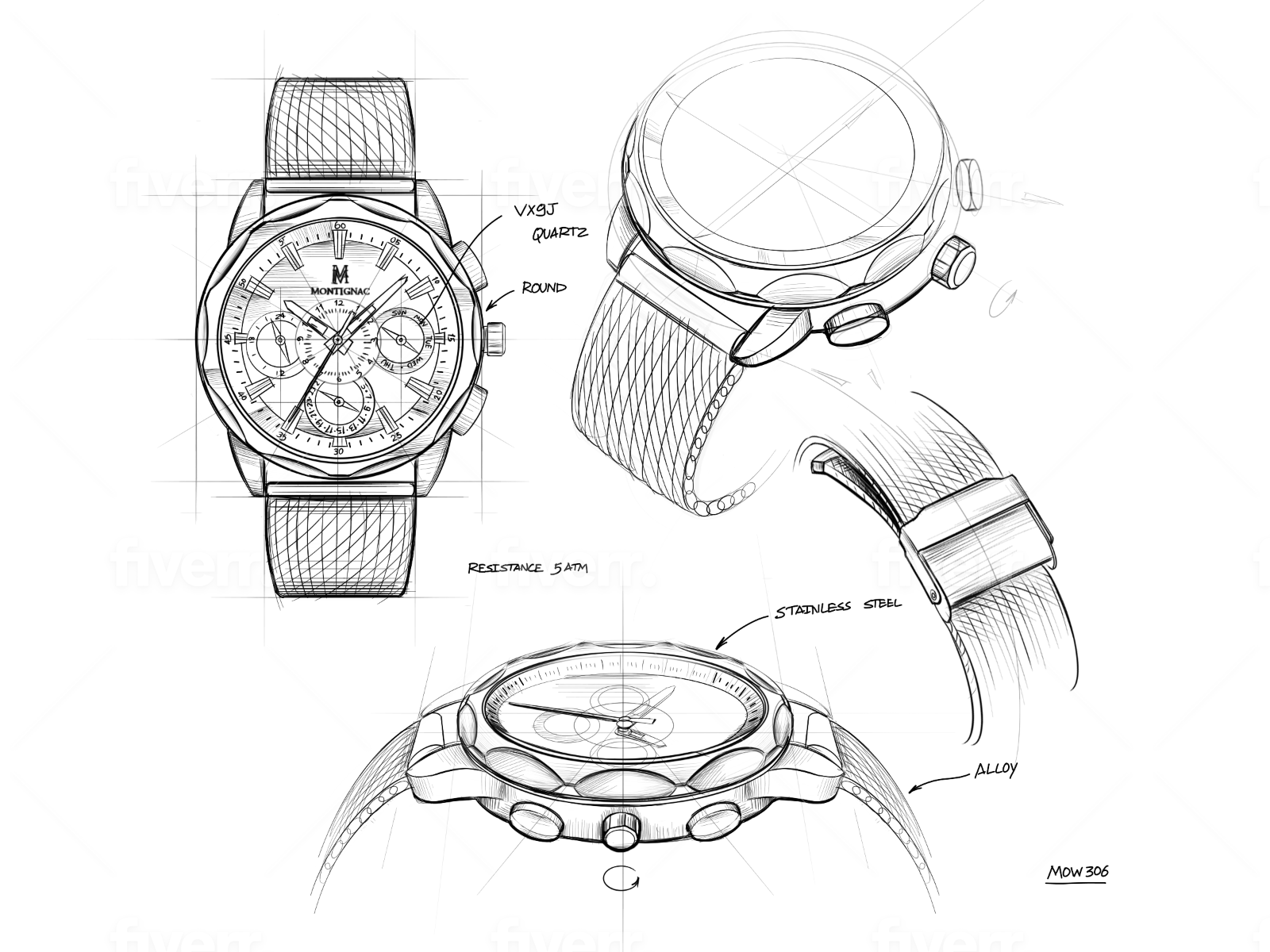 Fonctions : 3 aiguilles (heures, minutes, secondes), jour de la semaine, date, 24 heures