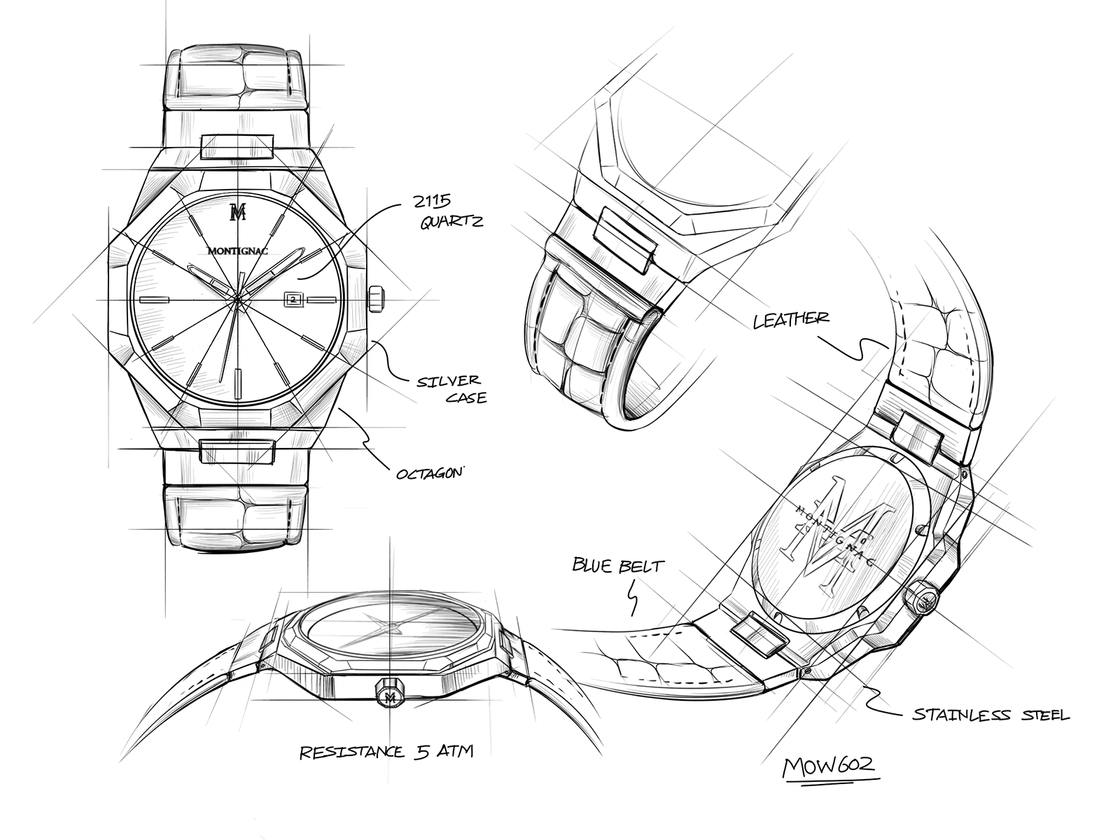 L'octogone est, depuis sa création, l'une des signatures esthétiques de la Maison. Pour la première fois, Montignac revisite cette forme pour la rendre élégante et intemporelle. Dotée de trois aiguilles et d'un guichet de date à 3h, l'alliance du cadran et du bracelet cuir bleu roi de ce modèle confère à cette création une noblesse horlogère unique. La montre MOW602 est dessinée et assemblée en France.